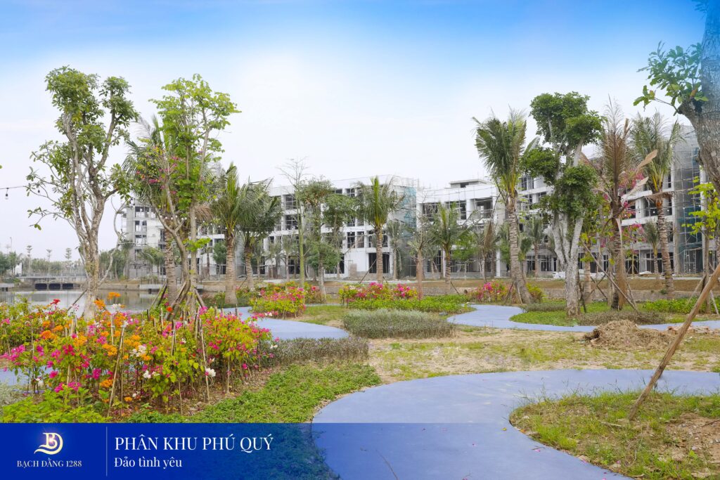 + Tiện ích cảnh quan: Hàng loạt các tiện ích đã hoàn thiện tạo nên diện mạo bừng sức sống mới cho toàn dự án: Đường dạo bộ, vườn hoa, đảo tình yêu, vườn sự kiện, khu triển lãm ngoài trời, cầu ngắm cảnh, bãi đỗ xe.